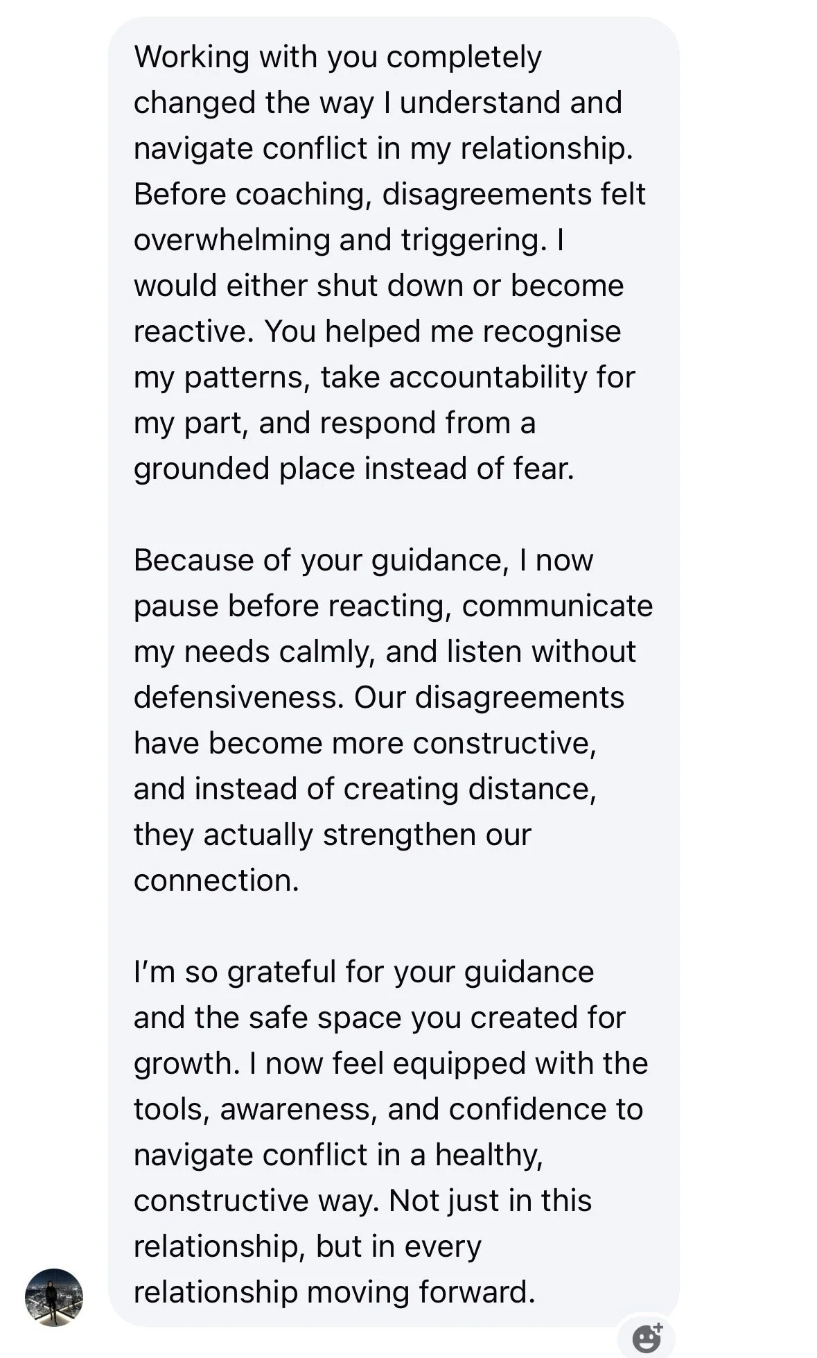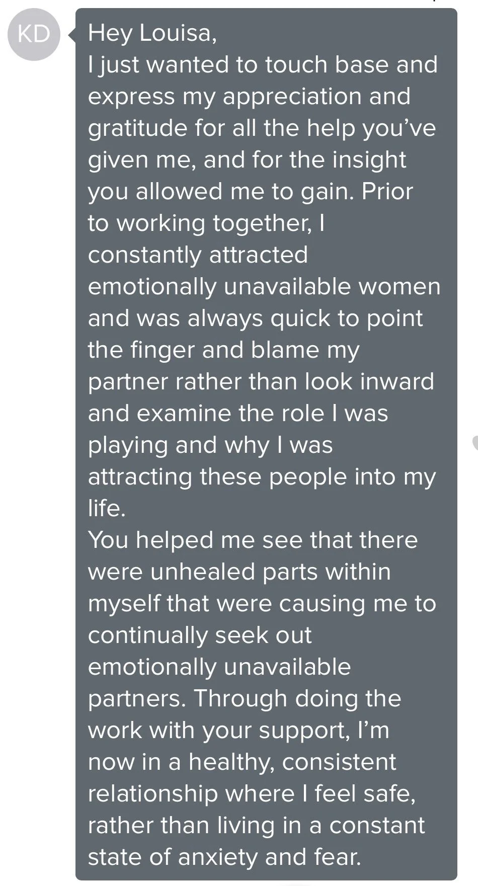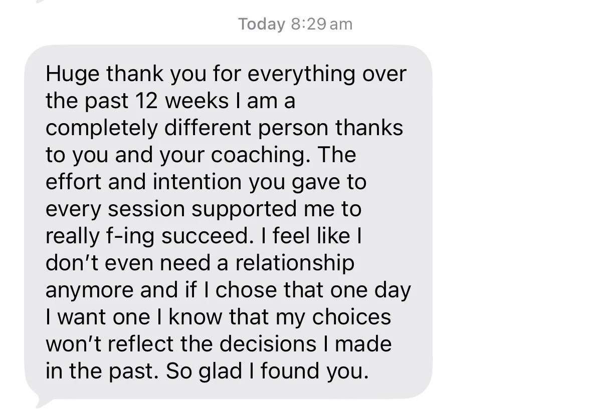My clients go from obsessing over mixed signals and losing themselves in love to feeling calm, confident, and in control of their standards.